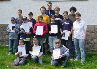 Die Reise zum Trainingslager führt uns dieses Mal quer durch den Thüringer Wald zum nördlichen Zipfel der Rhön. Weite Täler mit kleinen Dörfern, flach abfallende Hänge, beweidet durch Schafe und Kühe, ausgedehnte Waldgebiete auf den Bergrücken – ein sehr natürliches Land, welches sich an der ehemaligen innerdeutschen Grenze eröffnet. Ein heiteres und wohliges Gefühl breitet sich aus und verstärkt sich, als wir im Windschatten des Gläserbergs das schmucke Fachwerkhaus mit seinen leicht abfallenden Obstwiesen und Gärten erblicken. Gedanken an das ferne Heim fallen schnell ab und schon kurze Zeit nach unserer Ankunft stehen wir auf dem Berg und atmen die frische, klare Luft, genießen den herrlichen Blick in das weite Land, auf ferne Bergketten, Täler und Dörfer. Der Wind weht kräftig und so suchen wir uns eine Wiese, die etwas geschützt liegt und beginnen mit dem ersten Training.