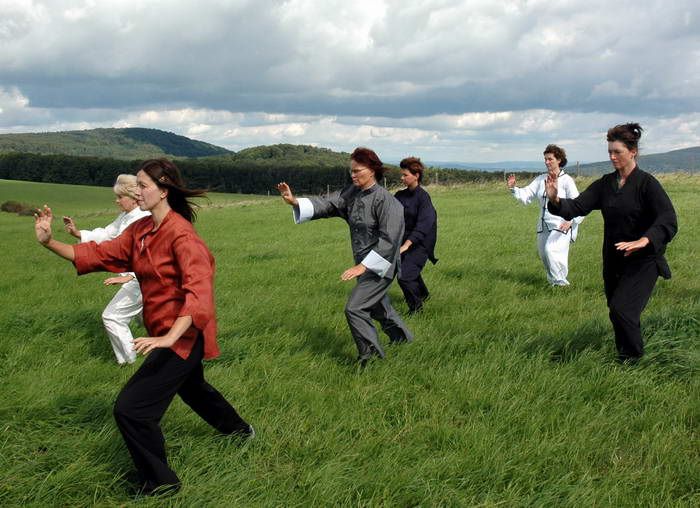 Seit etwa eineinhalb Jahren erlernen wir nach und nach die einzelnen Bestandteile der Pekingform. So erreichen wir nun die Form 24, den Schluss und sind zunächst erleichtert – endlich „können“ wir den Ablauf der Pekingform. Wir üben Details wieder und wieder, erlernen Grundübungen, die den Ablauf in der Form erklären und festigen. Besonders schwer fällt es uns, entspannt zu sein. Die Hand- und Fußrücken zeigen uns ihre Sehnen, wir haben Schmerzen im Nacken, im oberen Rücken. Es erfordert immer wieder die Erinnerung daran, die Schultern stets hängen zu lassen, den Rücken in aufrechter Form zu halten, die Mitte zu finden, die Gelenke an unsichtbaren Fäden zu führen. Ab und zu gelingt es schon. Es fühlt sich gut an und motiviert uns zum Weitermachen.