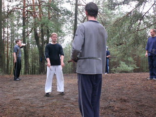 Das jährliche Zusammentreffen einer kleinen Gruppe von Freunden, die sich gemeinsam in der Kampfkunst üben, war dieses Jahr für mich etwas Besonderes. Aufgrund eines Unfalles war es mir nicht möglich, aktiv am Training teilzunehmen. So habe ich in diesem Trainingslager die Möglichkeit genutzt und das Üben aus einer völlig neuen Perspektive betrachtet. Zum einen fallen einem viele Dinge auf, die sonst beim Mitüben immer entgangen sind. Man kann sehr viel lernen, auch wenn man seinen Körper nicht auf die Art und Weise bewegen kann, wie man es selber gerne hätte. Die Umsetzung von Hinweisen des Lehrers kann man direkt mitverfolgen. Wenn man jetzt noch aus seiner eigenen Erfahrung weiß, dass viele Menschen ähnliche Fehler machen, kann man die Berichtigungen auch auf sich übertragen, obwohl man die spezielle Übung nicht mitgemacht hat. Aus dieser Sicht kann ich es nur jedem empfehlen, auch bei Trainingslagern und Seminaren teilzunehmen, auch wenn man nicht richtig mitüben kann. Aber auf der anderen Seite ist es natürlich frustrierend zu sehen, wie die Anderen interessante Übungen ausführen. Hier möchte ich als Beispiel die Schnitttests anführen: dabei werden die Güte des Schwertes und die Fertigkeiten des Schwertträgers getestet. Neben allen fortgeschrittenen Schwertkunstübenden hat auch Felix Hommel seinen ersten Schnitttest durchgeführt. Für seinen ersten Schwerthieb mit einem scharfen Katana ist der Schnitt doch recht gut gelungen. (Man muss dazu sagen: Felix übt sich normalerweise im Umgang mit den Sai, einer Waffe die speziell als Gegenwaffe zum Schwert konzipiert wurde.) Es hat mir in der einen oder anderen Situation wirklich in den Fingern gekribbelt. Aber hier muss man seiner aktuellen Befriedigung wichtigere Dinge voranstellen. Das ist ebenfalls ein beachtenswerter Punkt, über den ich mir wären dieses Trainingslagers Gedanken machen konnte.