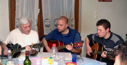 Am Abend, nach dem Essen, drehen sich die Gespräche um die Themen des Seminars. Qigong, Kihon – es werden Analogien betrachtet, Sensei Werner Lind schlägt die Brücke zu Budo und Persönlichkeit. Die Zeit vergeht schnell, es werden die Gitarren gestimmt und die Liederbücher geholt – wir scheitern an Harmonien und versuchen es trotzdem wieder – erfolgreicher. Ein Blick zum Nachbarn – ein kaum sichtbares Zunicken, ein kurzes Lächeln – ein Moment voller Energie. Kleine Gesten, die so viel Kraft geben können.