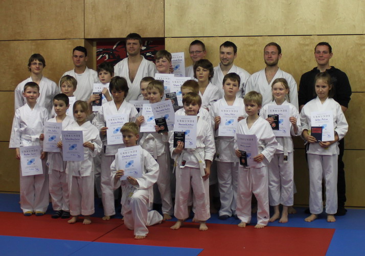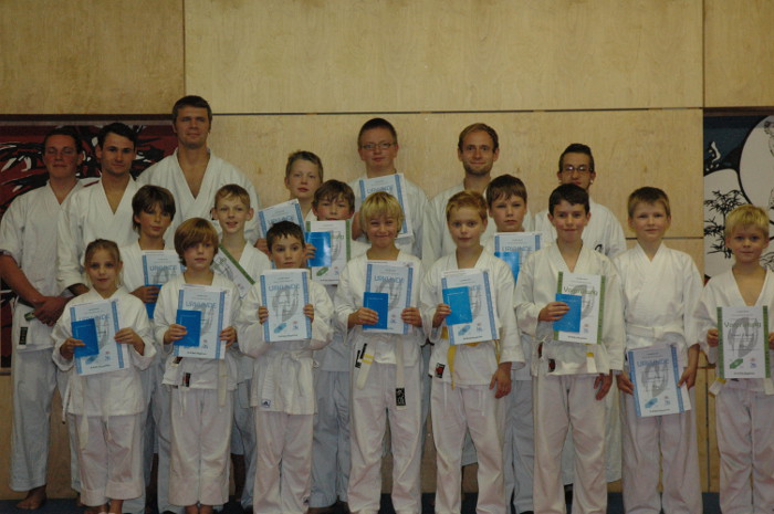 Am genannten Freitag fanden wieder einmal Kinder-Karate-Prüfungen im Fûryûkan statt. Unter den Augen ihrer Übungsleiter konnten Toni Anders, Benedikt Dolgener, Vincent Etterich, Friedrich Felber, Nico Freudenau, Julia und Lukas Gose, Arthur und Martin Hauswald, Felix Jahny, Valentino Jentzsch, Oliver Lunkwitz, Justin Pilz, Jonas Rocker, Carina und Christian Scherzberg, Antonio Schulze und Philine Weber die Prüfung zum nächsten Karate-Grad bestehen. Herzlichen Glückwunsch!