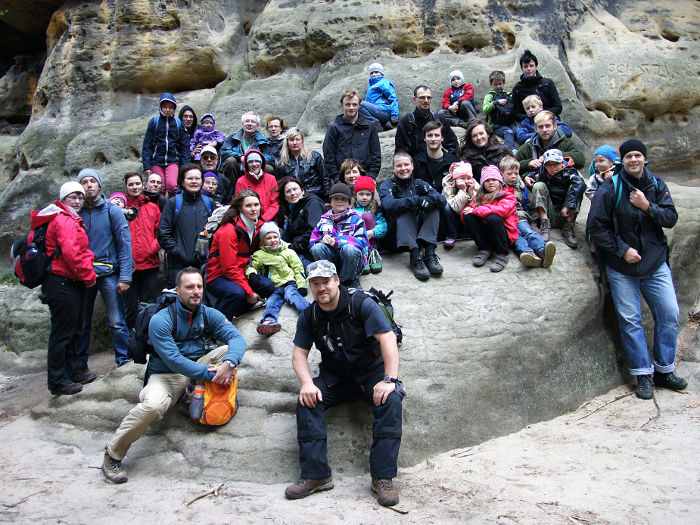 Am kühlen, aber sonnigen Tag der deutschen Einheit waren wir mal wieder in der Sächsischen Schweiz herbstwandern. Mit über 40 Fûryû-ka bzw. deren Familienangehörigen gab es bei der elften Auflage einen Teilnehmerrekord. Die Strecke hatte dankenswerter Weise Ingolf Rusch wie immer für alle zuverlässig vorerkundet: diesmal ging es vom Startpunkt Postelwitz unterhalb der Schrammsteine entlang und durch das Kirnitzschtal zurück nach Bad Schandau. Auch wenn es nicht immer einfach war, die in Lebensalter und Wanderkondition höchst heterogene Gruppe beieinander zu halten, hatten wir doch ein schöne gemeinsame Zeit, in der nicht nur aber auch darüber sinniert wurde, warum die Mühe des Anstiegs nicht selten ausgeblendet bleibt, wenn man freudig ausruft: "Es geht endlich wieder aufwärts!" - Manch einer mag vielleicht den Ausblick in die Ferne von einem Felsen vermisst haben, doch jede Herbstwanderung ist eben ein bisschen anders. Diesmal endete sie unvergesslich mit einer Fahrt in der historischen Kirnitzschtalbahn. Also dann, auf ein Neues im nächsten Jahr!