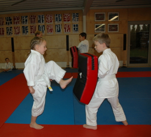 Wir waren ca. 10 Kinder und vier Übungsleiter. Nach einer kurzen Begrüßung haben sich alle umgezogen und unser Kampfsport konnte beginnen!
